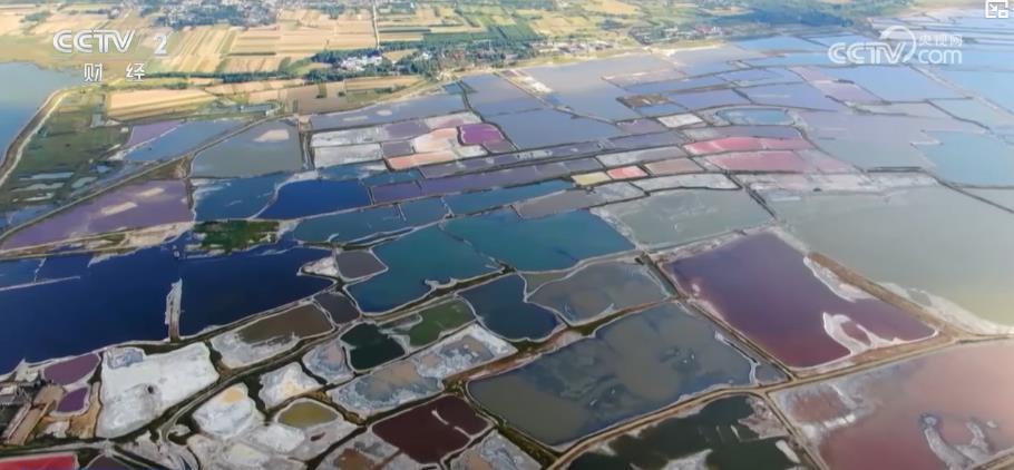 日前,位于山西运城的盐湖呈现出迷人的七彩湖光,宛如一个巨大的天然调色盘。