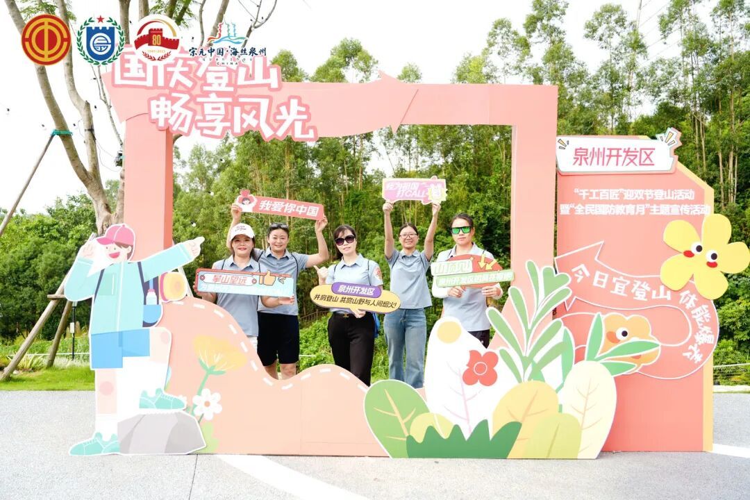 在中秋、国庆双节即将到来之际,9月30日,泉州开发区首届“千工百匠”职工登山活动暨“全民国防宣传月”主题宣传活动于紫帽山景区顺利举行。全区64支基层工会代表队、320余名职工齐聚一堂,以奋发向上的精神面貌,共同庆祝新中国成立76周年,展现开发区职工团结奋进的时代风采。受区党工委、管委会委托,党工委委员、党群工作部部长、工委会主任李海平出席活动并致辞,向全体参与职工致以节日的问候。