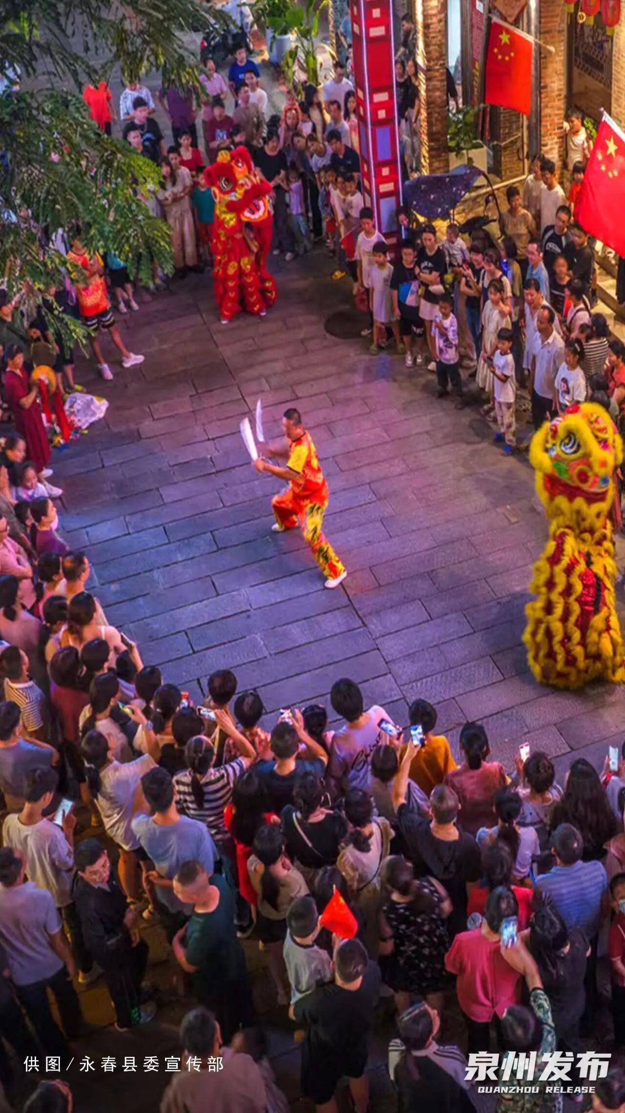 今日,历史烟火与现代活力在此交融。香橼阁中佛手茶香袅袅,非遗工坊里篾香青烟缠绕、纸织画细腻生辉,白鹤拳招式藏古街精气神。老商号变身文创空间,节庆时舞龙舞狮踏过青石板,戏曲吆喝声声交织,多元文化馆舍唤醒记忆与血脉。