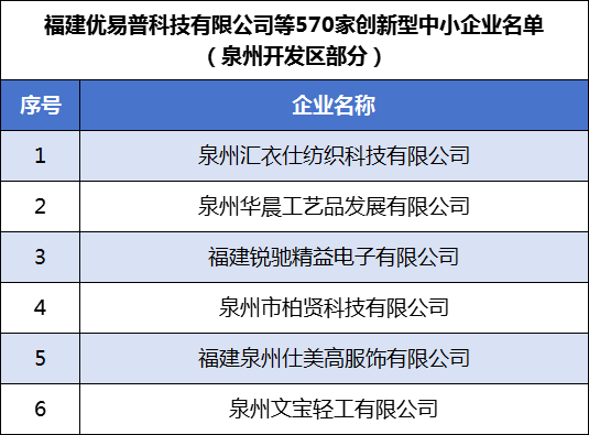 恭喜!泉州开发区这6家企业上榜创新型中小企业名单