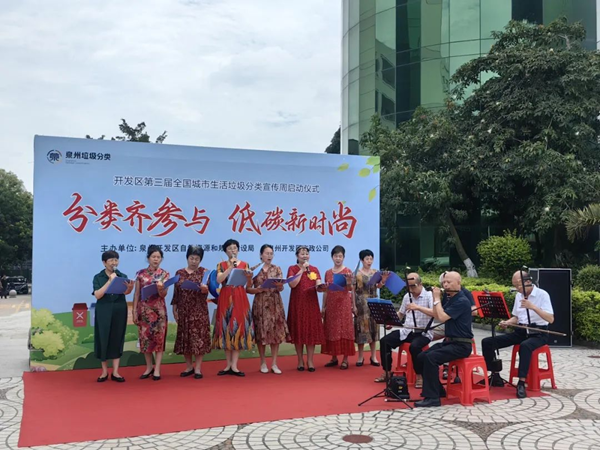 5月21日,市政公司联合多部门在邻里广场举办“分类齐参与 低碳新时尚”垃圾分类宣传周活动。活动现场结合开展舞蹈表演、古筝弹奏、闽南童谣等文艺演出,向群众宣传倡导 “垃圾分类 绿色环保” 的生活理念。