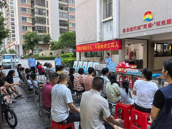 8月23日下午,区公安分局联合开发区曙光救援队,走进嘉龙现代城“党建 +”邻里服务站开展反诈宣传,通过发放手册、讲解反诈知识,切实提升居民防范意识与能力。