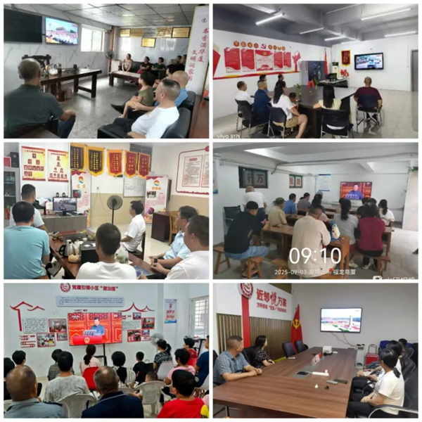 9月3日,居民小区党支部在小区邻里服务站组织观看纪念抗战胜利80周年阅兵式。