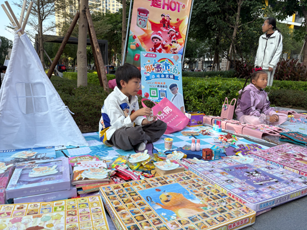 五、11月23日,中南漫悦湾小区开展“童趣·跳蚤市场”主题活动,以闲置流转促进资源循环利用,传递绿色生活理念。