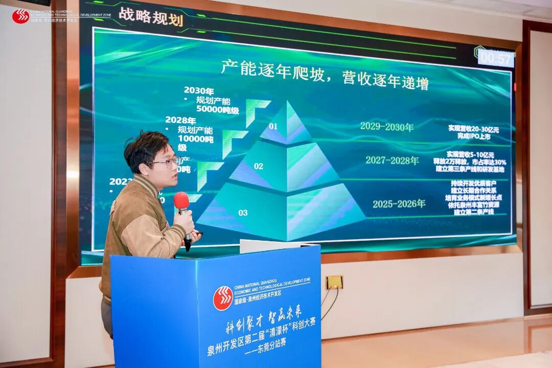 本场分站赛聚焦电子信息、高端装备、新材料、新能源及生物医药等战略性新兴产业领域,12个参赛团队通过“8分钟项目展示+7分钟答辩”的形式,全方位展示了项目核心技术优势、商业模式创新思路,以及落地泉州开发区的发展规划。