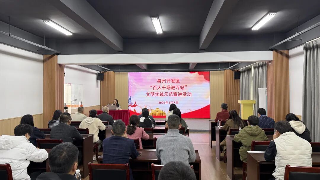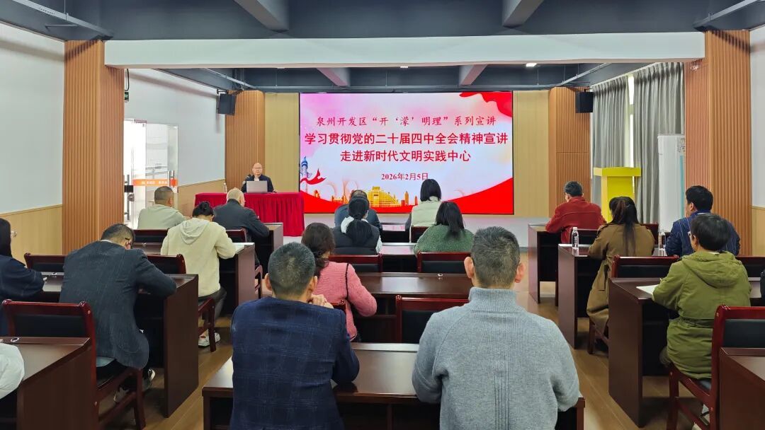 为深入学习贯彻党的二十届四中全会精神,深化党的创新理论学习和宣传教育,常态化长效化开展党史学习教育,2月5日,泉州开发区在区新时代文明实践中心举办“开‘濛’明理”系列宣讲之“学习贯彻党的二十届四中全会精神宣讲”暨“百人千场进万站”文明实践示范宣讲活动,区内非公企业党员、小区居民参加。