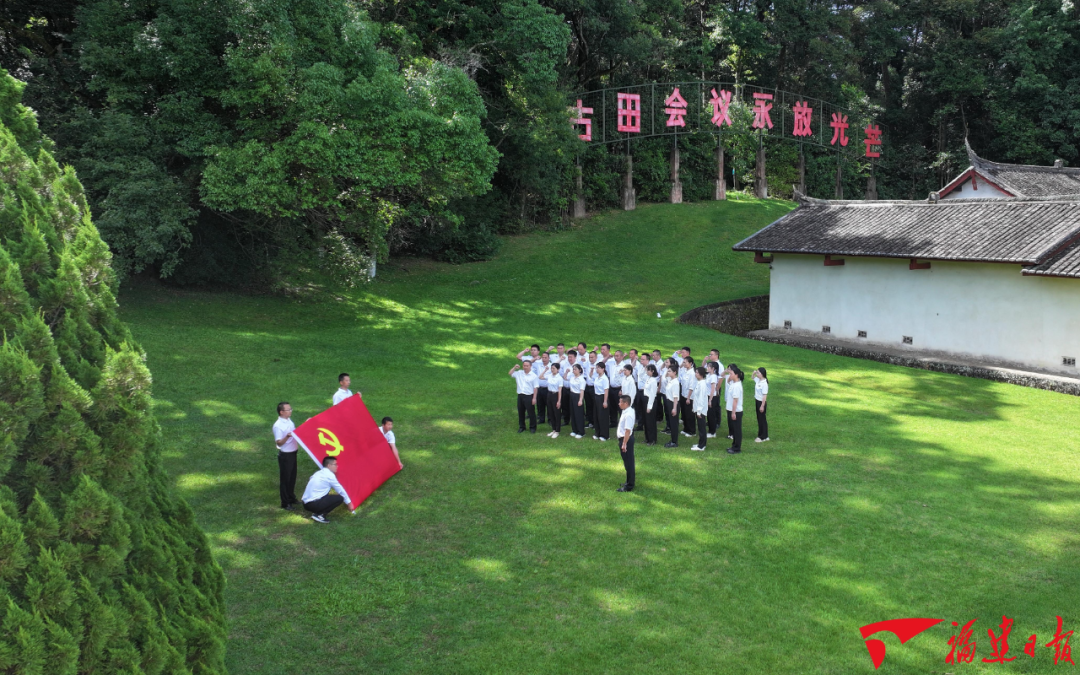 上杭县古田镇党员干部在古田会议会址举行“重温入党誓词、传承红色基因”主题活动。杨国鑫 罗小春摄