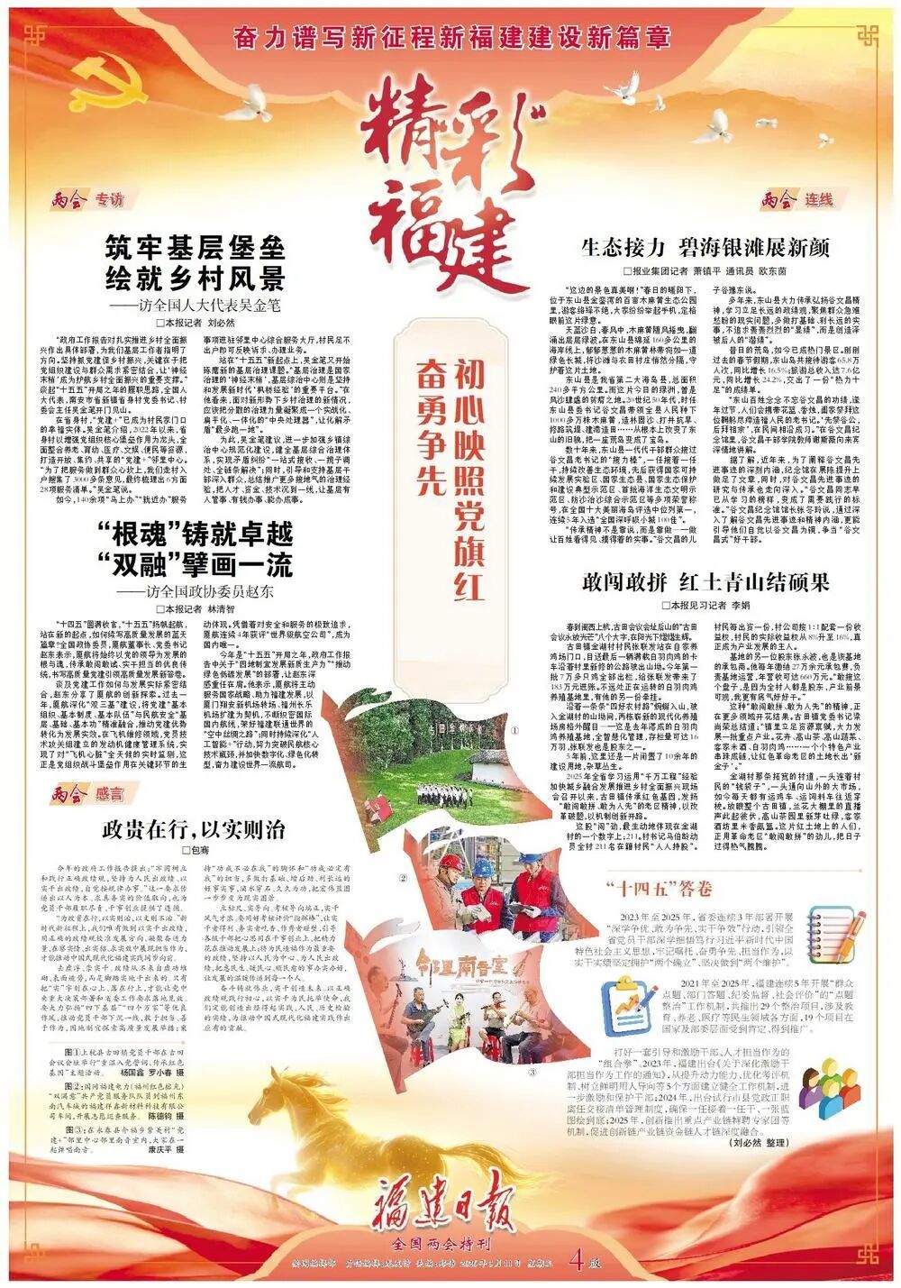 3月11日,《福建日报》继续推出《奋力谱写新征程新福建建设新篇章》全国两会特刊·精“彩”福建。具体如下——