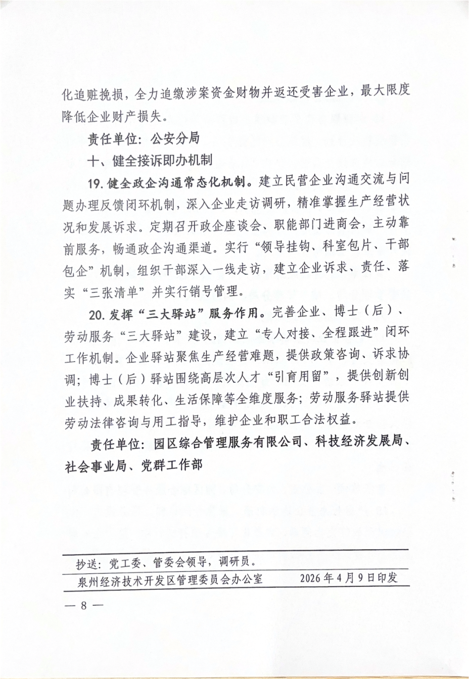 下一步,泉州开发区将以清单化管理、项目化推进、闭环式落实,确保各项举措落地见效,持续擦亮“政策最贴心、办事最省心、投资最安心、服务最暖心、生活最舒心”的“五心”园区营商环境品牌,为各类经营主体创新创业营造更优生态。